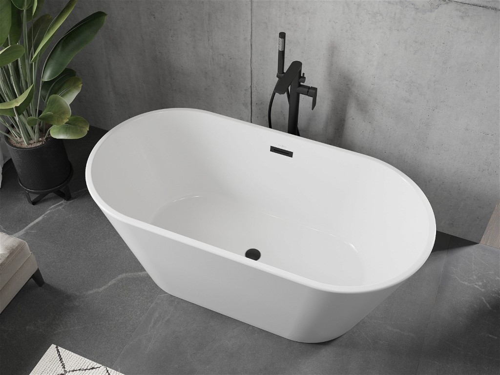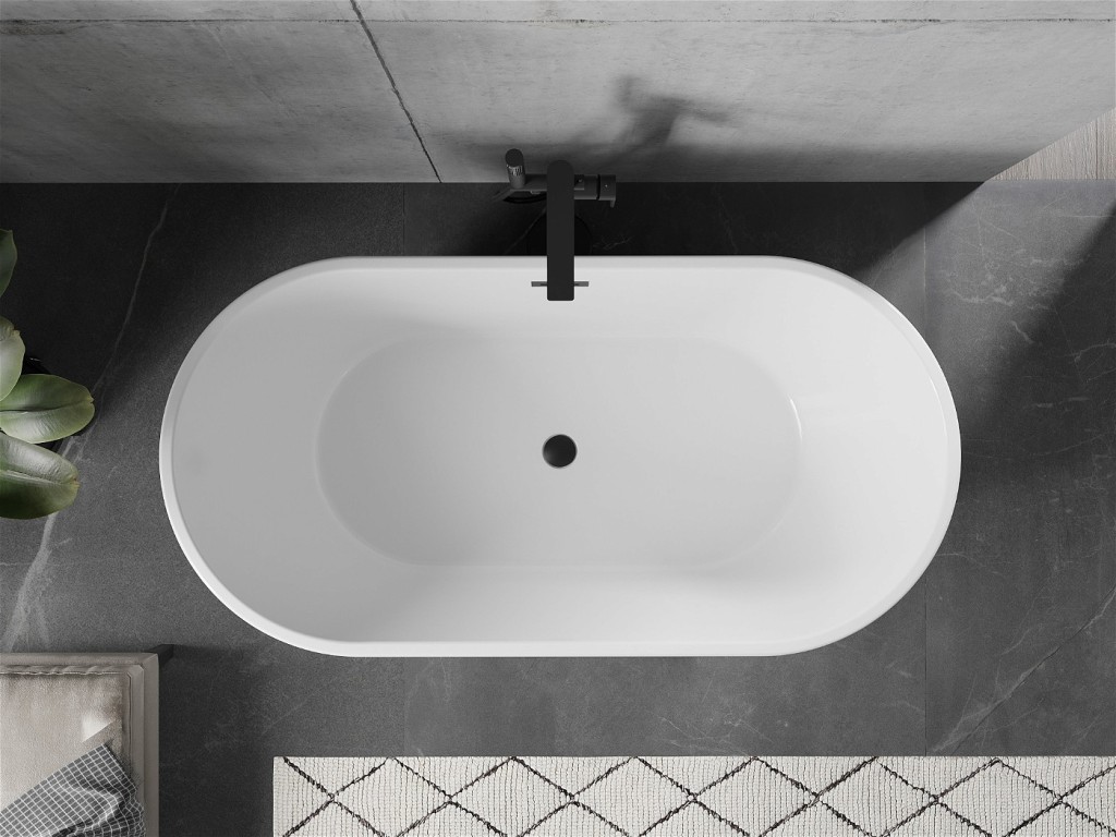 Voľne stojaca oválna akrylátová vaňa série FLAVIA od výrobcu MEXEN s prepadom a umiestnenom odpade na stred vane.