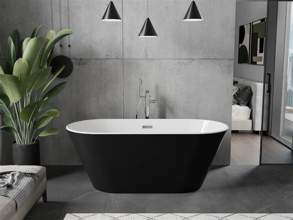 MEXEN - FLAVIA voľne stojaca vaňa 160x75, biela/čierna bez krytky prepadu a zátky (54031608075-SS)