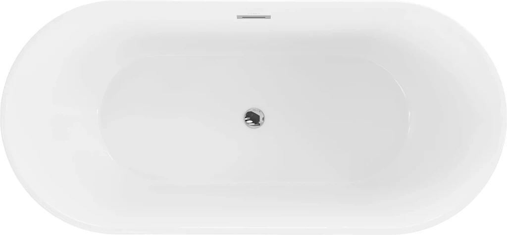 Voľne stojaca oválna akrylátová vaňa série FLAVIA od výrobcu MEXEN s prepadom a umiestnenom odpade na stred vane.