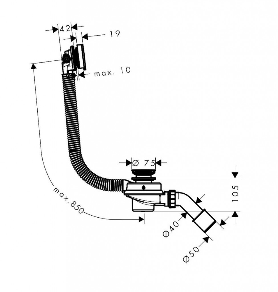 - vonkajší priemer odtokového potrubia: 50 mm