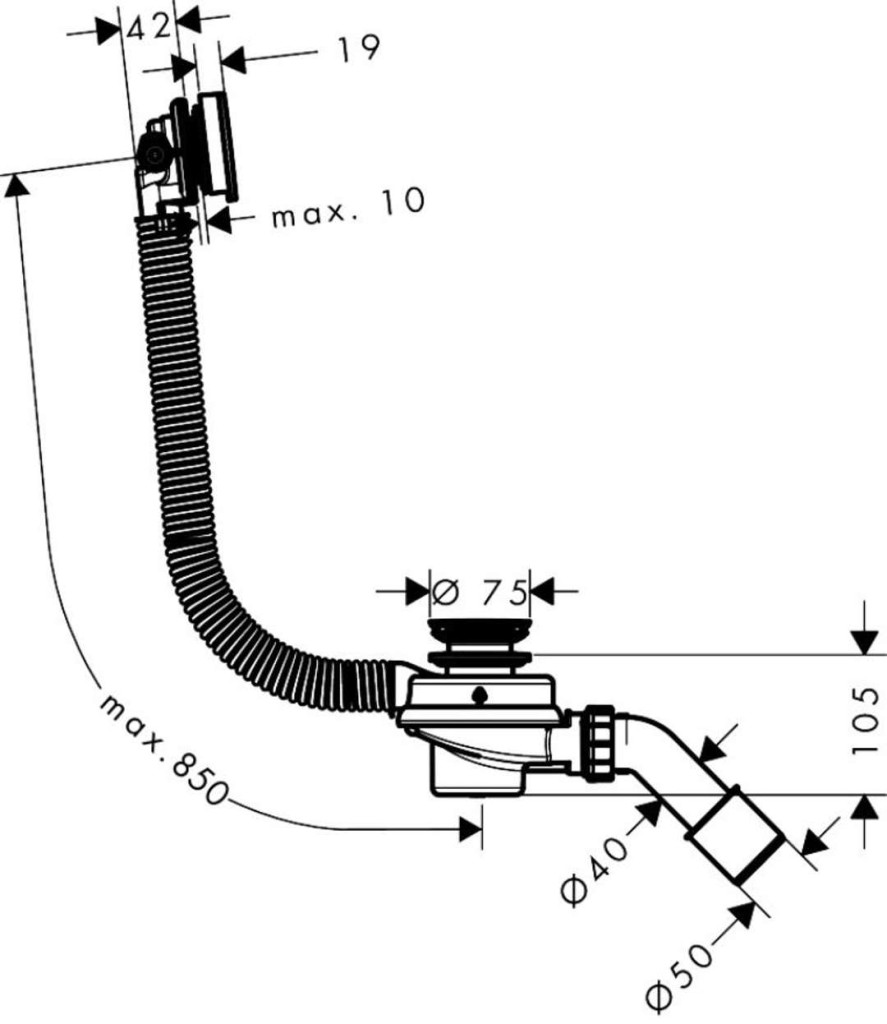 - vhodné pre vane z liatiny, ocele a plastu, ktoré sa hodia ako k štandardným, tak k extrémne veľkým vaniam, vane s odtokovým otvorom s priemerom 52 mm