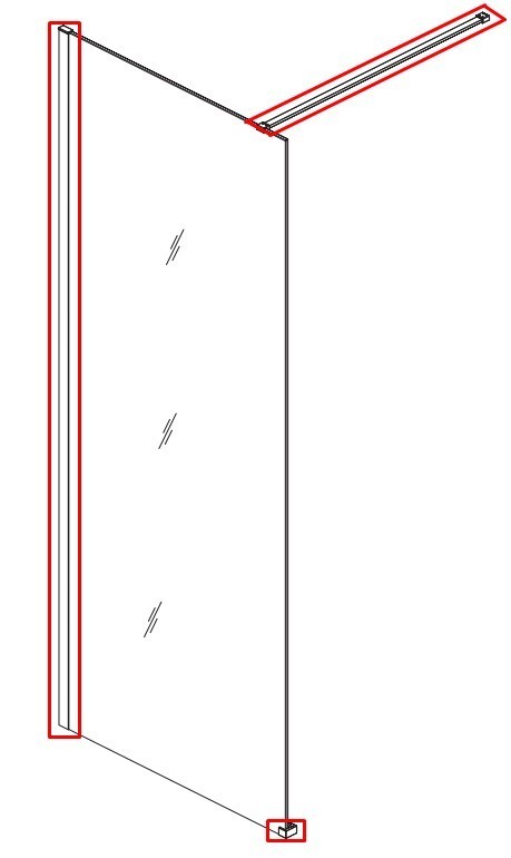 - Stabilizačnú výstuhu (dĺžka 120 cm), ktorú možno ľahko skrátiť podľa potreby – spája sklo so stenou a zaisťuje pevnosť celej zásteny.