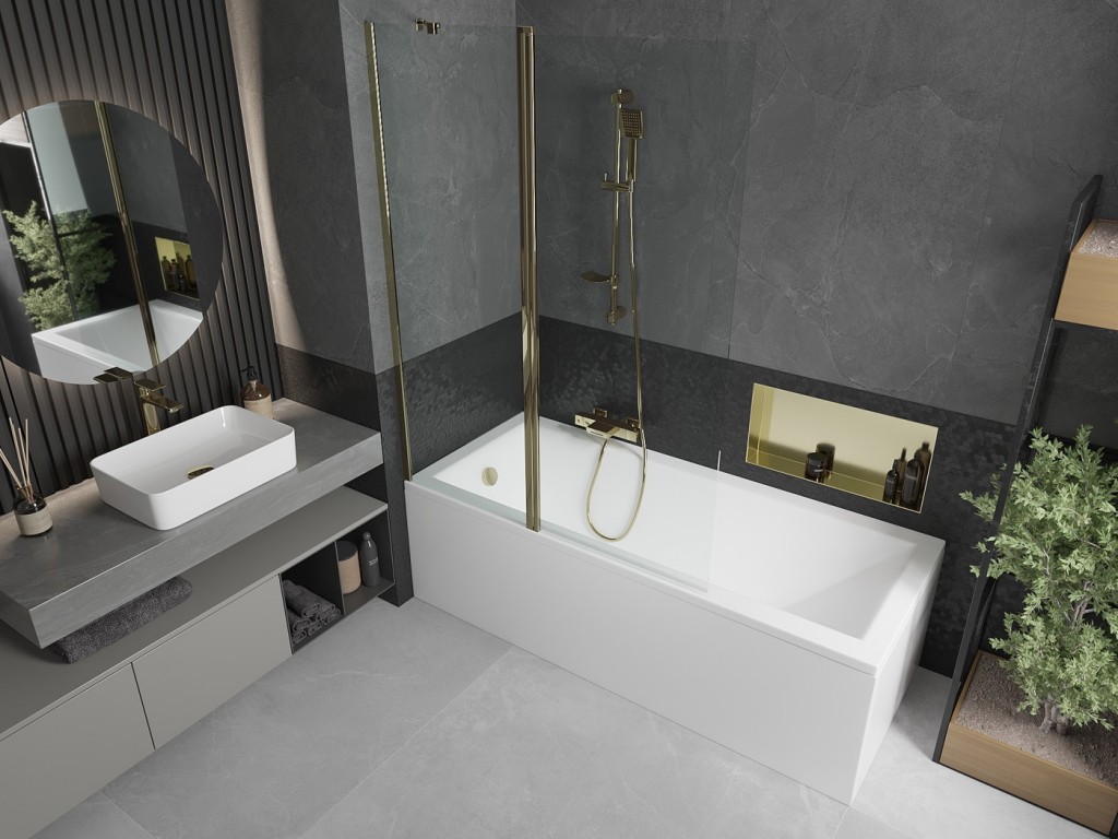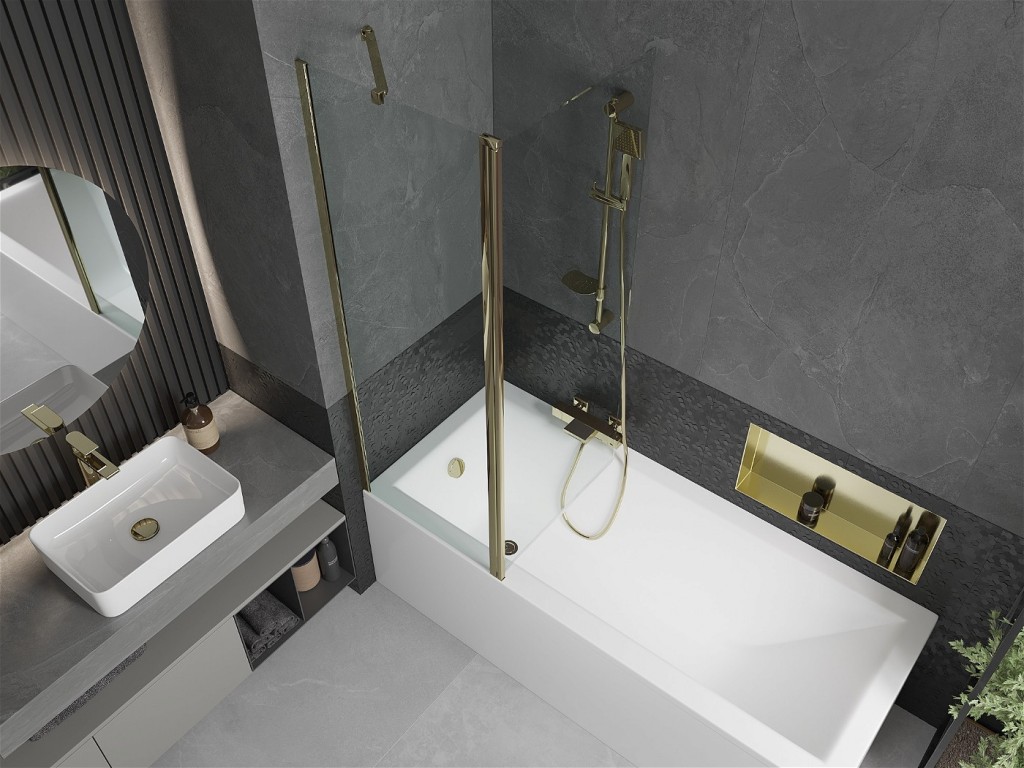 Áno, vaňovú zástenu FLIP od MEXEN s univerzálnou montážou je možné vybrať nielen z farebných variantov profilov: čierna mat, zlato a chróm, ale aj druhu skla, ako je transparentné alebo dekorované.