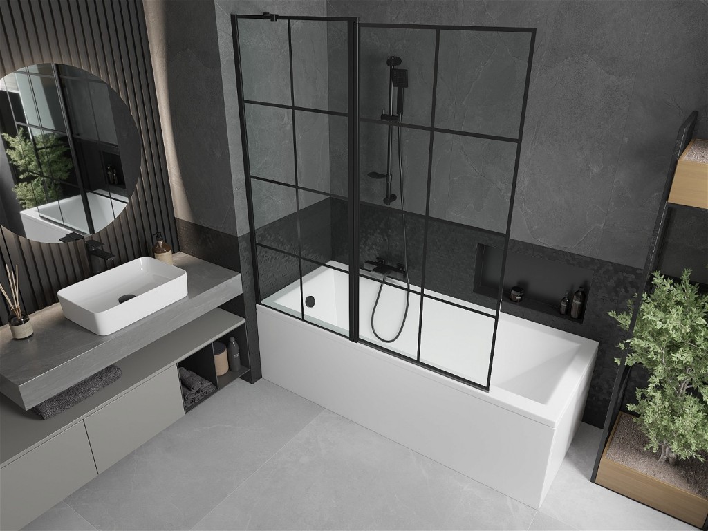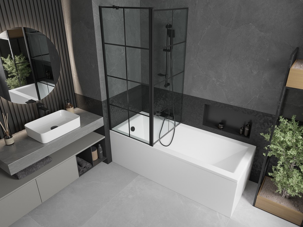 Výška zásteny je 150 cm a široká 140 cm, čím vytvoríte dostatočný priestor na sprchovanie bez toho, aby ste zaplavili celú kúpeľňu. Vaňovú zástenu tvoria dve časti, ktoré sú z 6 mm tvrdeného skla a hliníkových profilov s povrchovou farebnou úpravou.