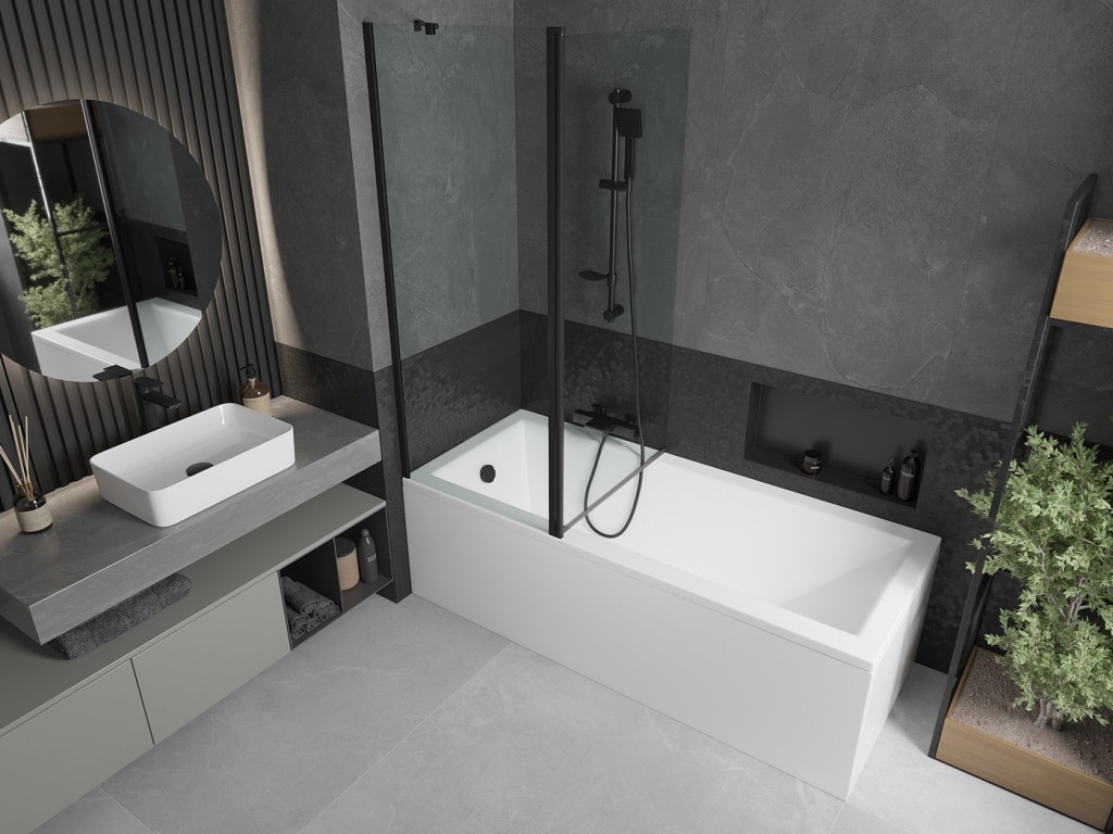 Áno, vaňovú zástenu FLIP od MEXEN s univerzálnou montážou je možné vybrať nielen z farebných variantov profilov: čierna mat, zlato a chróm, ale aj druhu skla, ako je transparentné alebo dekorované.