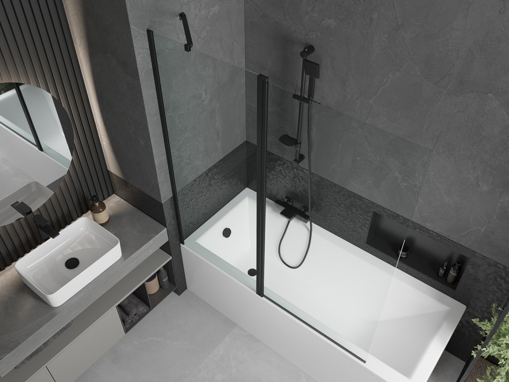 Výška zásteny je 150 cm a široká 140 cm, čím vytvoríte dostatočný priestor na sprchovanie bez toho, aby ste zaplavili celú kúpeľňu. Vaňovú zástenu tvoria dve časti, ktoré sú z 6 mm tvrdeného skla a hliníkových profilov s povrchovou farebnou úpravou.
