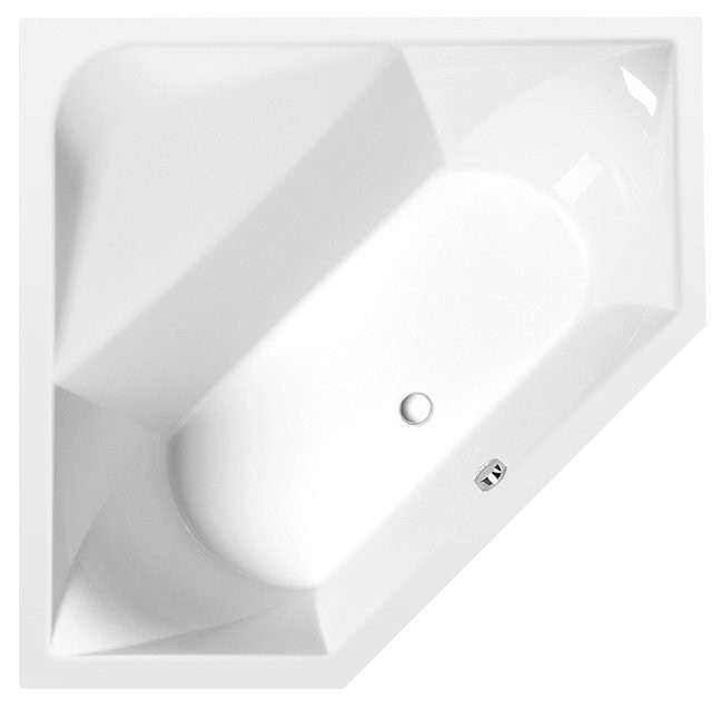 Vaňa s pohodlne tvarovanými stenami na opretie chrbta na oboch stranách a odtokom umiestneným uprostred.