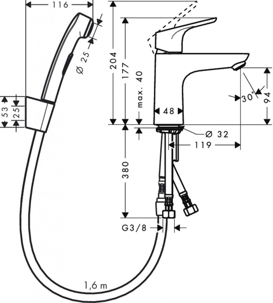 Súčasťou dodávky je páková umývadlová batéria s ručnou sprchou bidet, prívodnej hadice, držiak sprchy, sprchová hadica, odtoková súprava, upevňovací materiál, montážny návod.