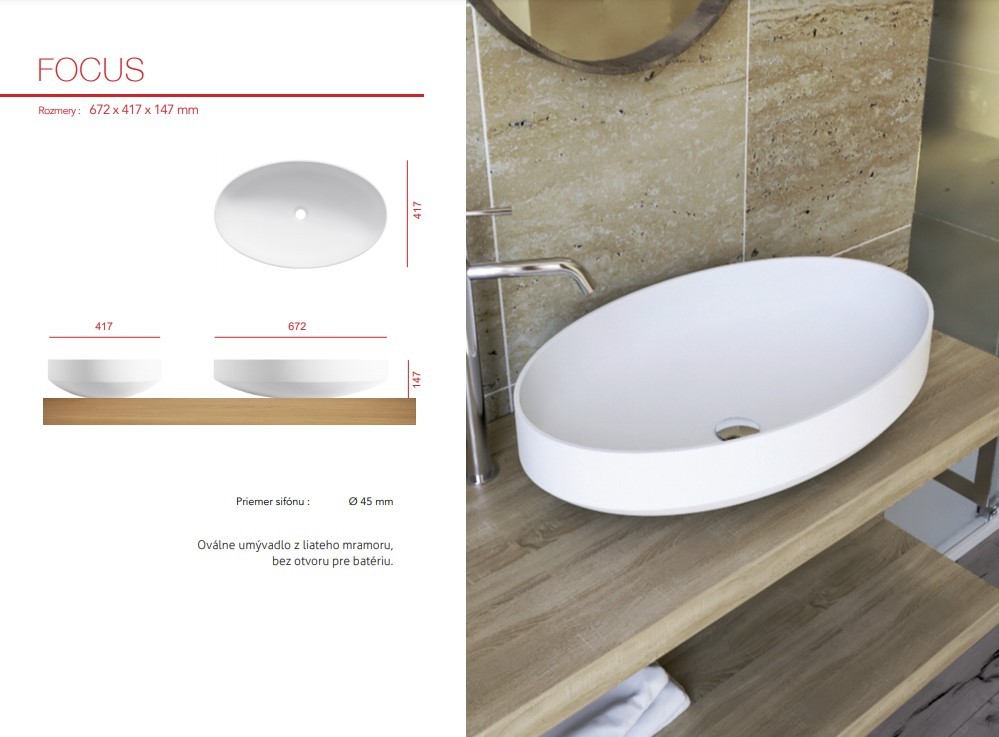 FOCUS oválne umývadlo z liateho mramoru 67,2x14,7x41,7 cm