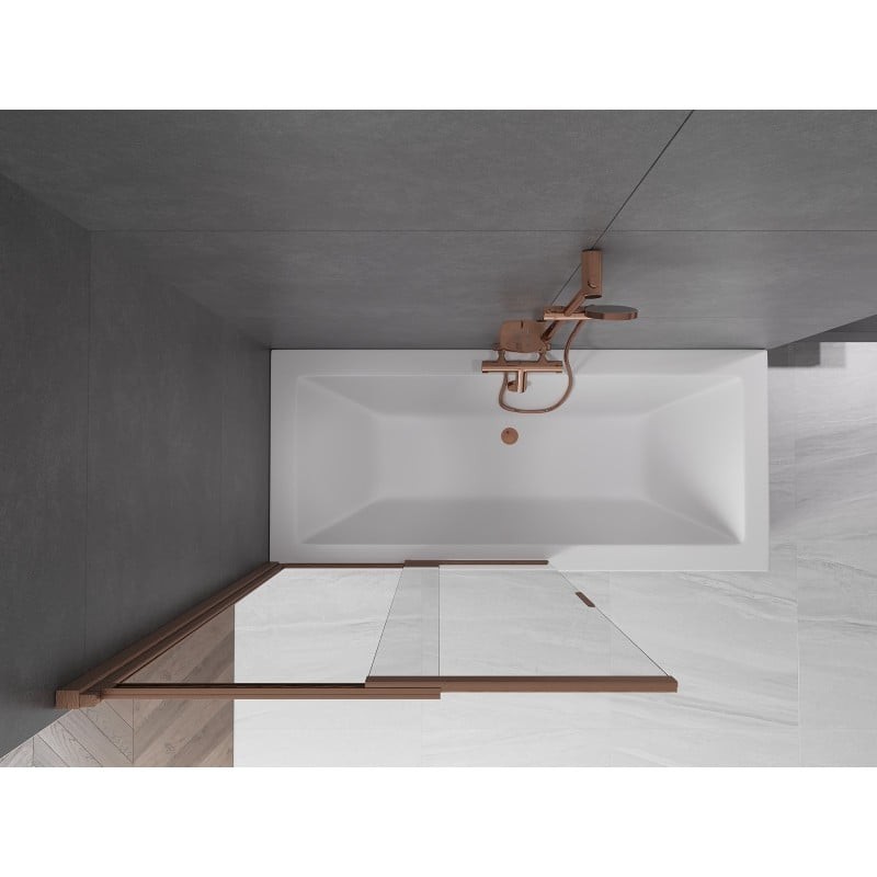 Technické údaje: Šírka: 100 cm Výška: 150 cm Typ: 2krídlové Montáž: Univerzálny Typ: Pohyblivé/Posuvné Typ skla: Tvrdené Farba skla: Priehľadné Hrúbka skla: 5 mm Povrchová úprava: Kartáčovaná meď Povlak pre ľahké čistenie Vyrovnanie nerovností