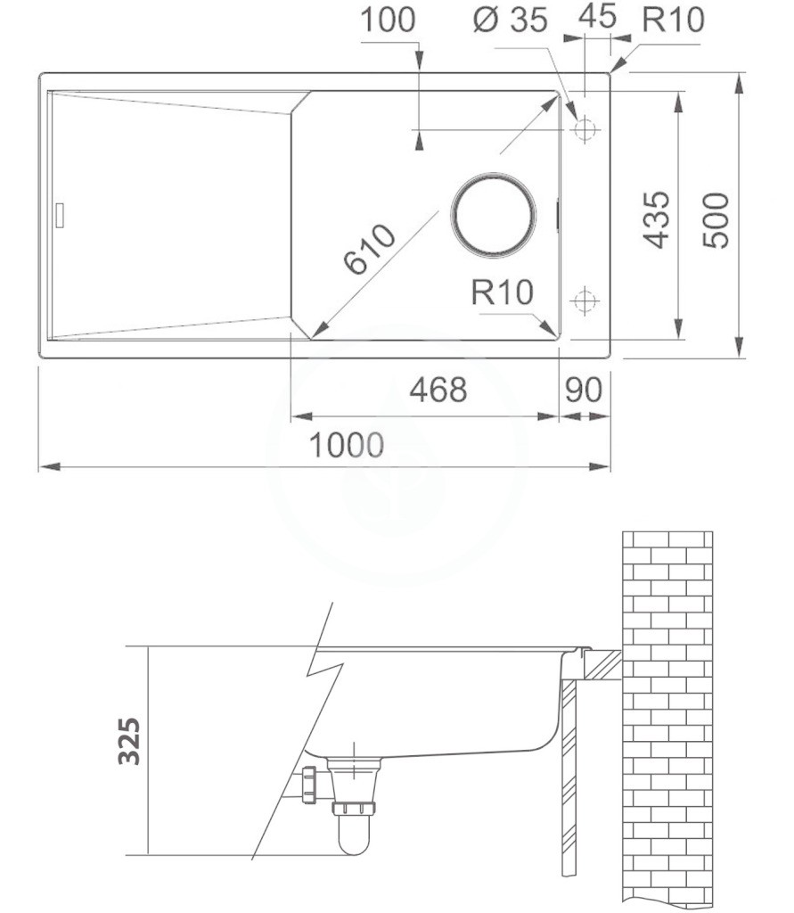 Kuchynský drez FXG 611-100, reverzibilné