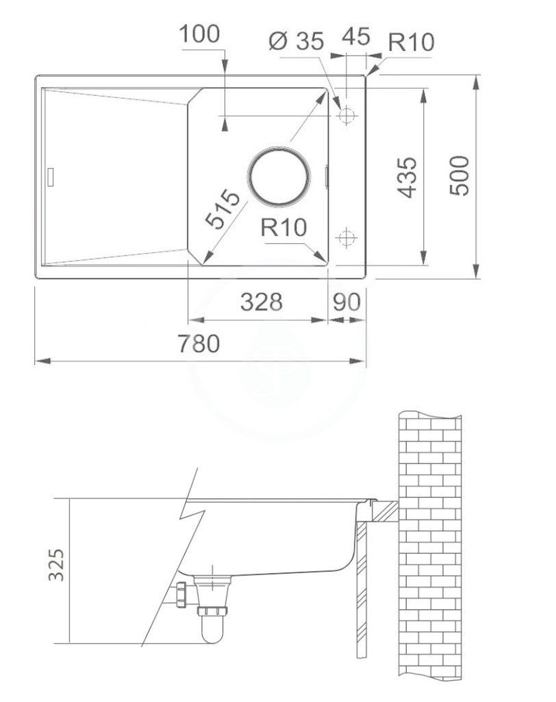 - sifon pro úsporu místa 6/4" s odbočkou na myčku