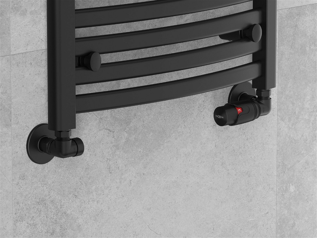 Termostatická sada ventilov (s nastaviteľným ovládaním označeným "MEXEN" a číselným indikátorom) k radiátorom vrátane okrúhlych rozetiek. Výrobca MEXEN túto termostatickú sadu ponúka vo farebnom prevedení: chróm, biela, zlato, antracit a čierna.
