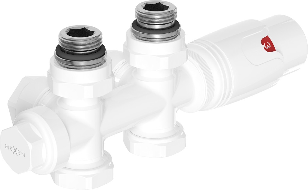Termostatická súprava série G00 je určená na pripojenie radiátorov. Súčasťou súpravy je: mosadzný, uhlový/ rovný ventil Uni-term pre radiátor s rozstupom 50 mm, obojstranný, pre stredové pripojenie s priemerom G1/2", termostatická hlavica so stupnicou 0-5, hlavový závit M30 x 1,5 mm.