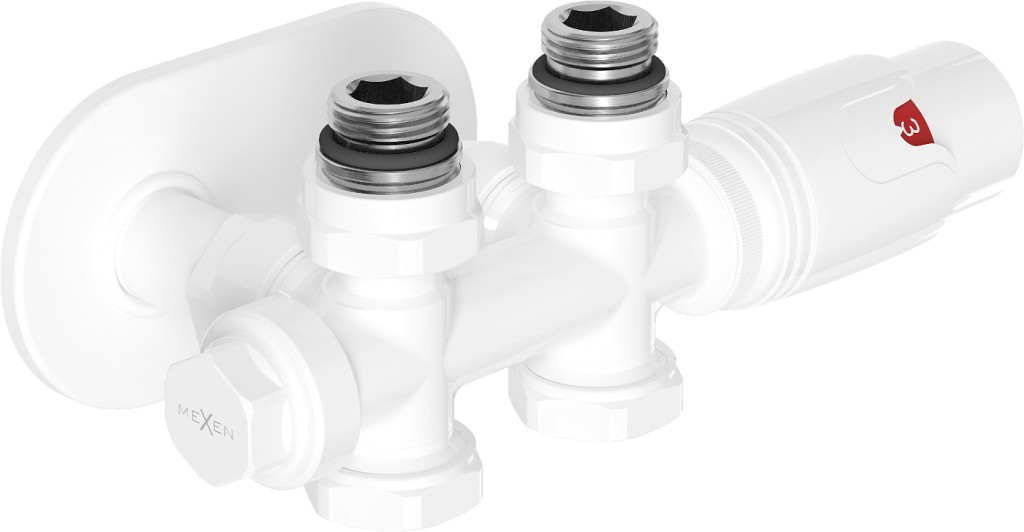 Termostatická súprava série G00 je určená na pripojenie radiátorov. Súčasťou súpravy je: mosadzný, uhlový/ rovný ventil Uni-term pre radiátor s rozstupom 50 mm, obojstranný, pre stredové pripojenie s priemerom G1/2", krycia rozetka z nerezovej ocele 115 x 65 x 7 mm otvorov okolo pripojovacích rúrok vedúcich k radiátoru s mosadznými puzdrami, termostatická hlavica so stupnicou 0-5, hlavový závit M30 x 1,5 mm.