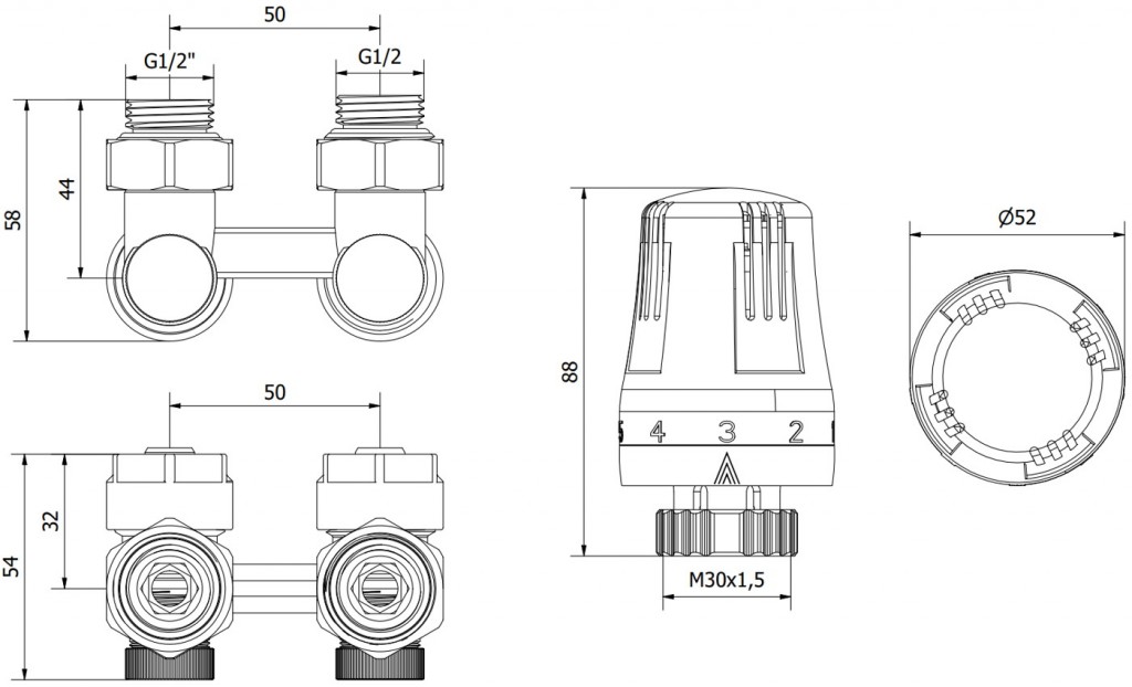 Priemer pripojenia: G 1/2" a pex 16x2 mm