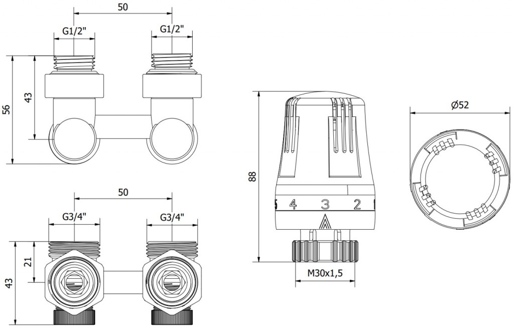 Priemer pripojenia ventilu: G 1/2" a G 3/4"