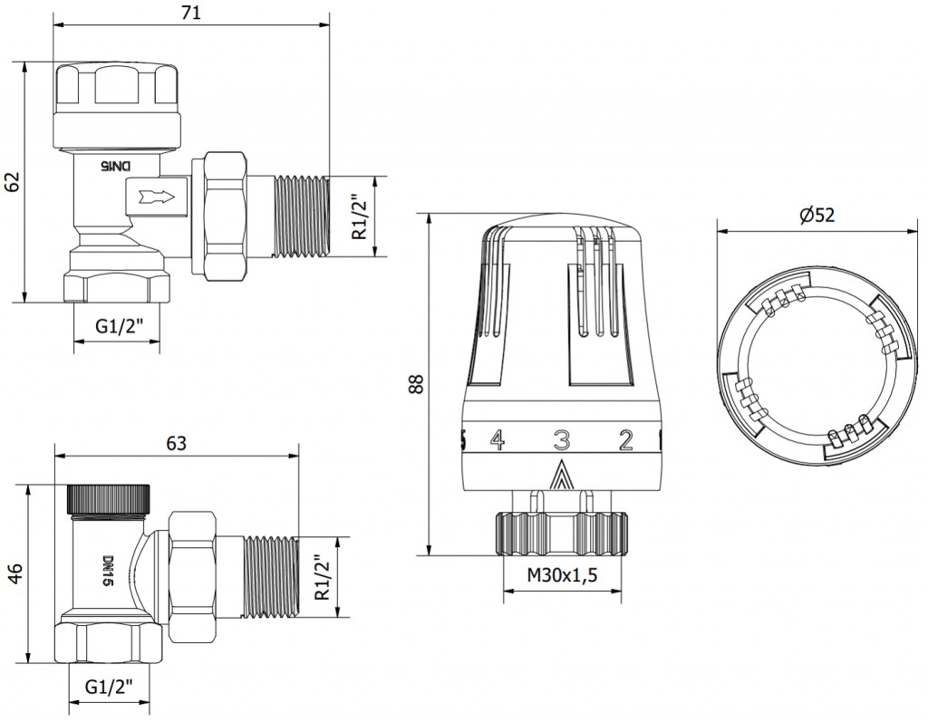 Sada obsahuje prívod radiátora a uzatvárací ventil