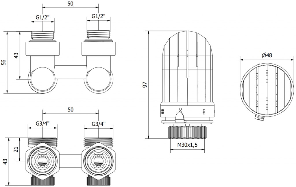 Priemer pripojenia ventilu: G 1/2" a G 3/4"