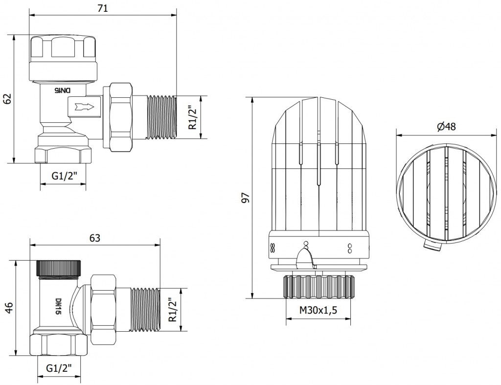 Sada obsahuje prívod radiátora a uzatvárací ventil
