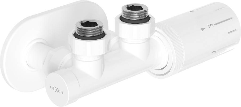 Termostatická uhlová súprava série G05 je určená na pripojenie radiátorov. Súčasťou súpravy je: mosadzný, uhlový ventil Uni-term pre radiátor s rozstupom 50 mm, obojstranný, pre stredové pripojenie s priemerom G1/2", krycia rozetka z nerezovej ocele 115 x 65 x 7 mm s otvormi na pripojenie rúrok vedúcich k radiátoru s mosadznými puzdrami, termostatická hlavica so stupnicou 0-5, hlavový závit M30 x 1,5 mm.
