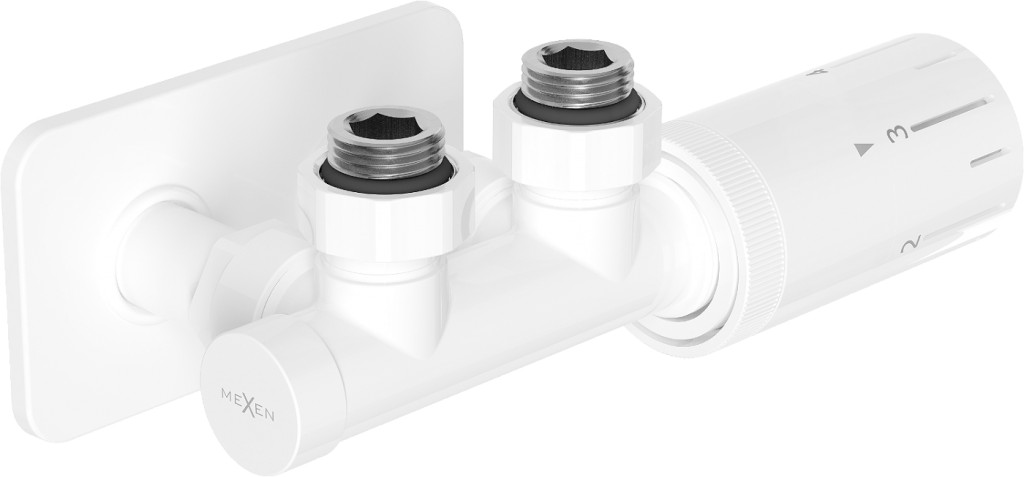 Termostatická uhlová súprava série G05 je určená na pripojenie radiátorov. Súčasťou súpravy je: mosadzný, uhlový ventil Uni-term pre radiátor s rozstupom 50 mm, obojstranný, pre stredové pripojenie s priemerom G1/2", krycia rozetka z nerezovej ocele 115 x 65 x 7 mm otvorov okolo pripojovacích rúrok vedúcich k radiátoru s mosadznými puzdrami, termostatická hlavica so stupnicou 0-5, hlavový závit M30 x 1,5 mm.