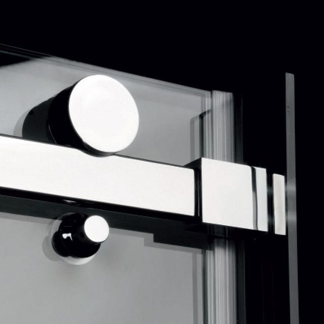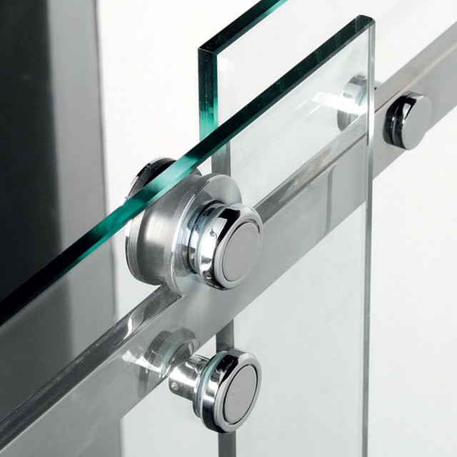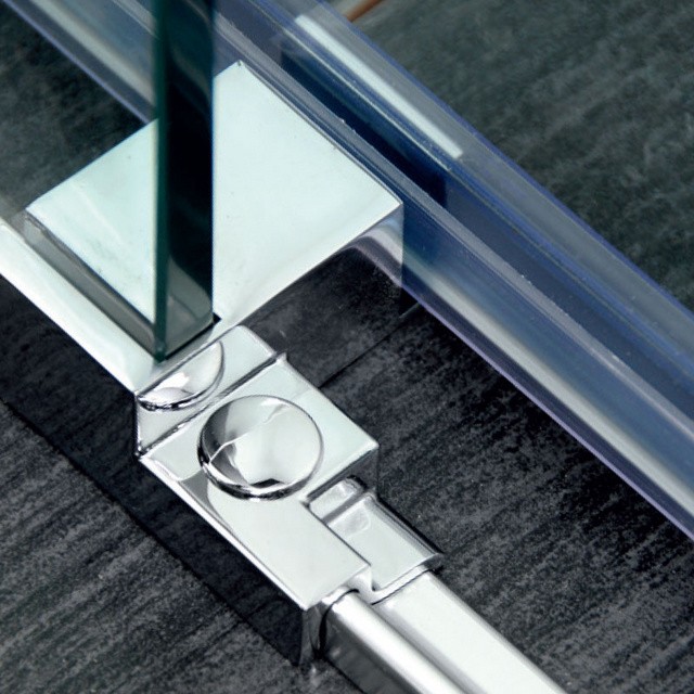 | Prahová lišta Prahovú lištu je možné prilepiť k podlahe/vaničke alebo ju možno zafixovať pomocou priložených skrutiek, ktoré zaslepíte chrómovými krytkami. | Vodiaci diel Dvere z bezpečnostného skla sú zavesené a ich pohyb usmerňuje vodiaci diel na podlahe. Posuvné zásteny Dragon tak umožňujú bezbariérový vstup. | Masívne kolesá Séria Dragon sa vyznačuje masívnymi ložiskovými kolesami, ktoré zaručia bezchybný chod zásten na mnoho rokov. |