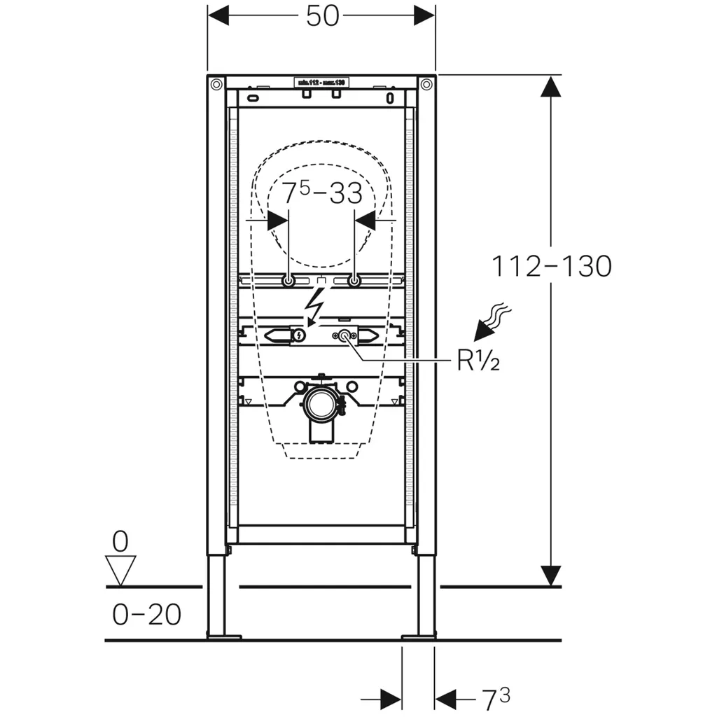 • Upevnenie pre prívod Rp 1/2 "výškovo a stranovo nastaviteľné