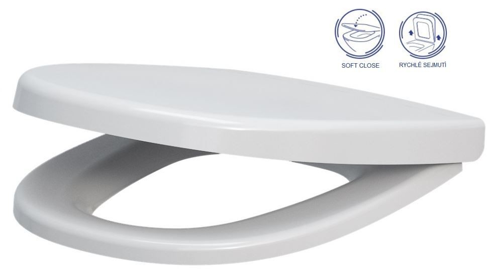 Duroplast antibakteriálne WC sedadlo s funkciou pomalého sklápania SOFT CLOSE, s jednoduchým odobratím pre jednoduché čistenie.