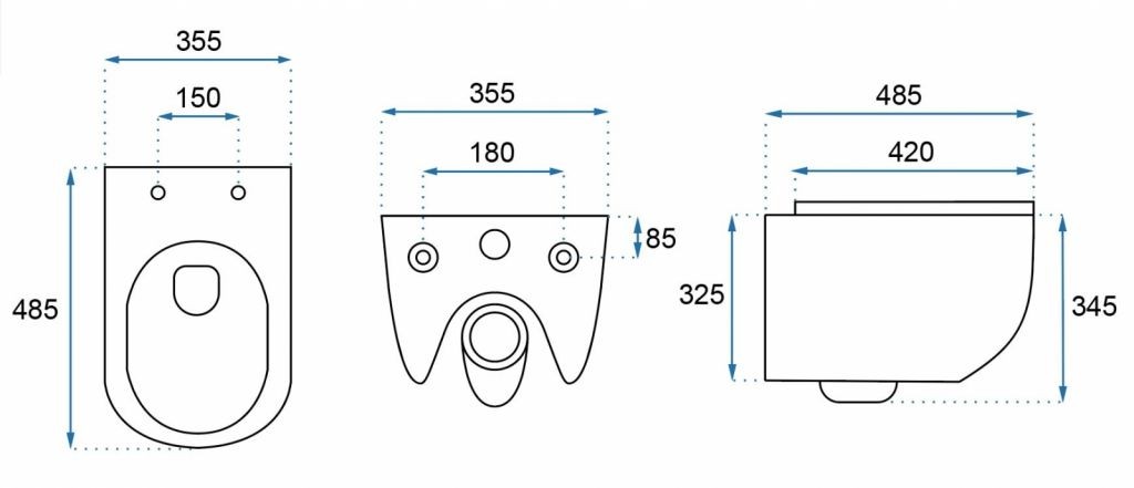 - rám pre nástenné WC s pripojovacími rozmermi podľa EN 33 a presahom do 62 cm
