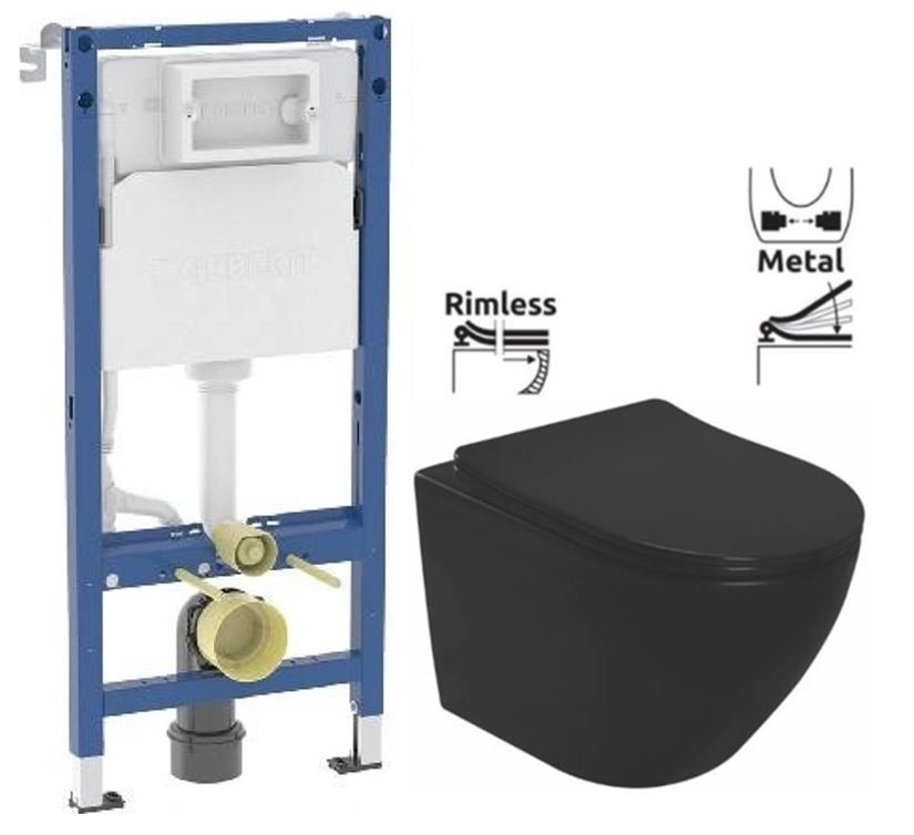Závesná WC misa RIMLESS Carlo Mini Slim čierna matná (REA-C8489)