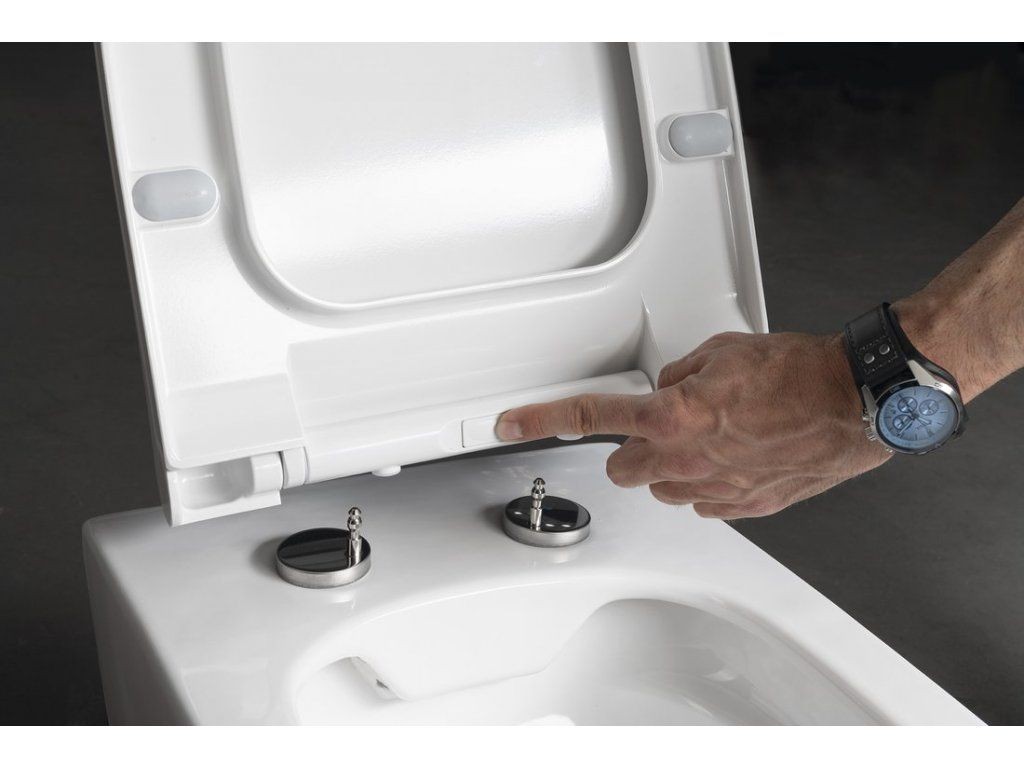 Závesná WC misa WC rimless MyJoys MY 2 /bez oplachového kruhu/ vrátane sedátka z duroplastu so zatváraním soft-close a inštalácia /odobratie sedátka je tzv. na jeden click/. Technológia rimless , na rozdiel od tradičných modelov, nemá vnútorný golier. Oplachovaná voda dôkladne umyje celý vnútorný povrch a zanechá ho čistý. V ťažko prístupných miestach sa tak nehromadia nečistoty a baktérie.