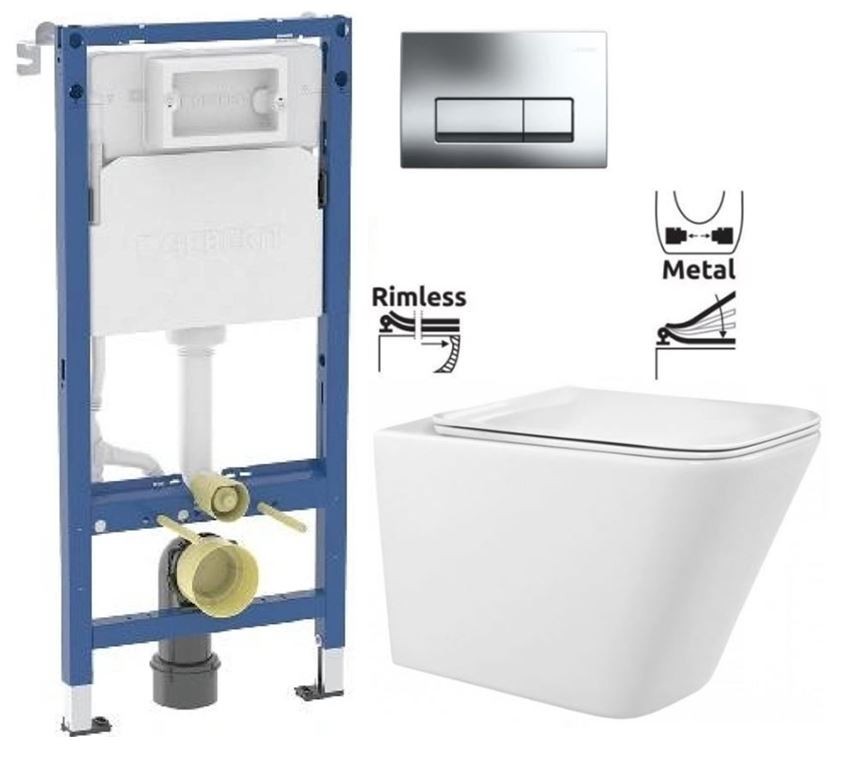 GEBERIT DuofixBasic s chrómovým tlačidlom DELTA51 + WC REA Raul Rimless + SEDADLO (458.103.00.2 51CR RA1)