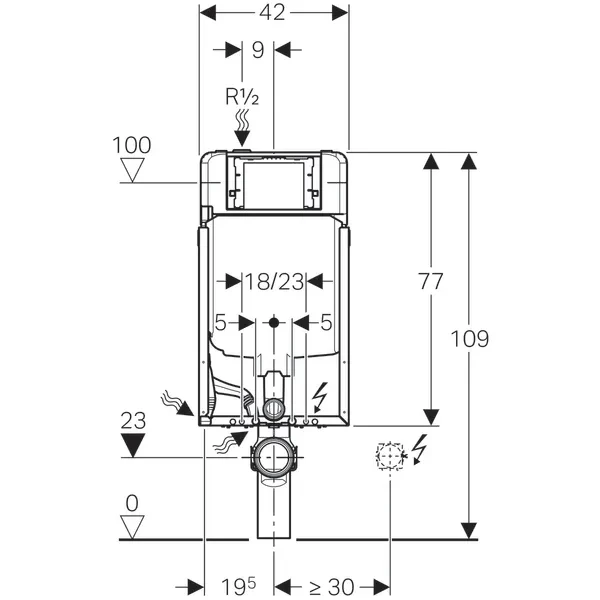 • Prívod vody R 1/2 ", vhodný pre MF, s integrovaným rohovým ventilom a ručným ovládacím kolieskom