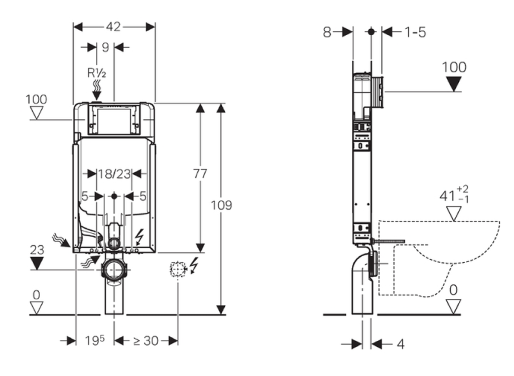 - Pro montáž závěsného WC se vzdáleností upevnění 18 cm nebo 23 cm