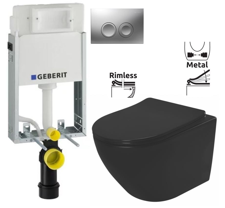 Závesná WC misa RIMLESS Carlo Mini Slim čierna matná (REA-C8489)