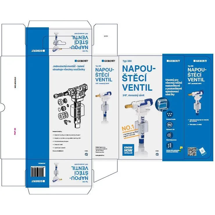 Geberit napúšťací ventil typ 380 (Unifill) bočné prívod vody 3/8 ", spojky z mosadze