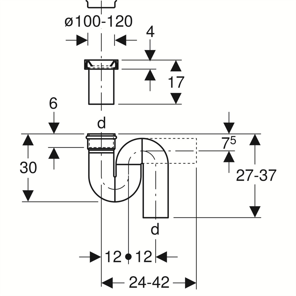 Výška vodního uzávěru 70 mm