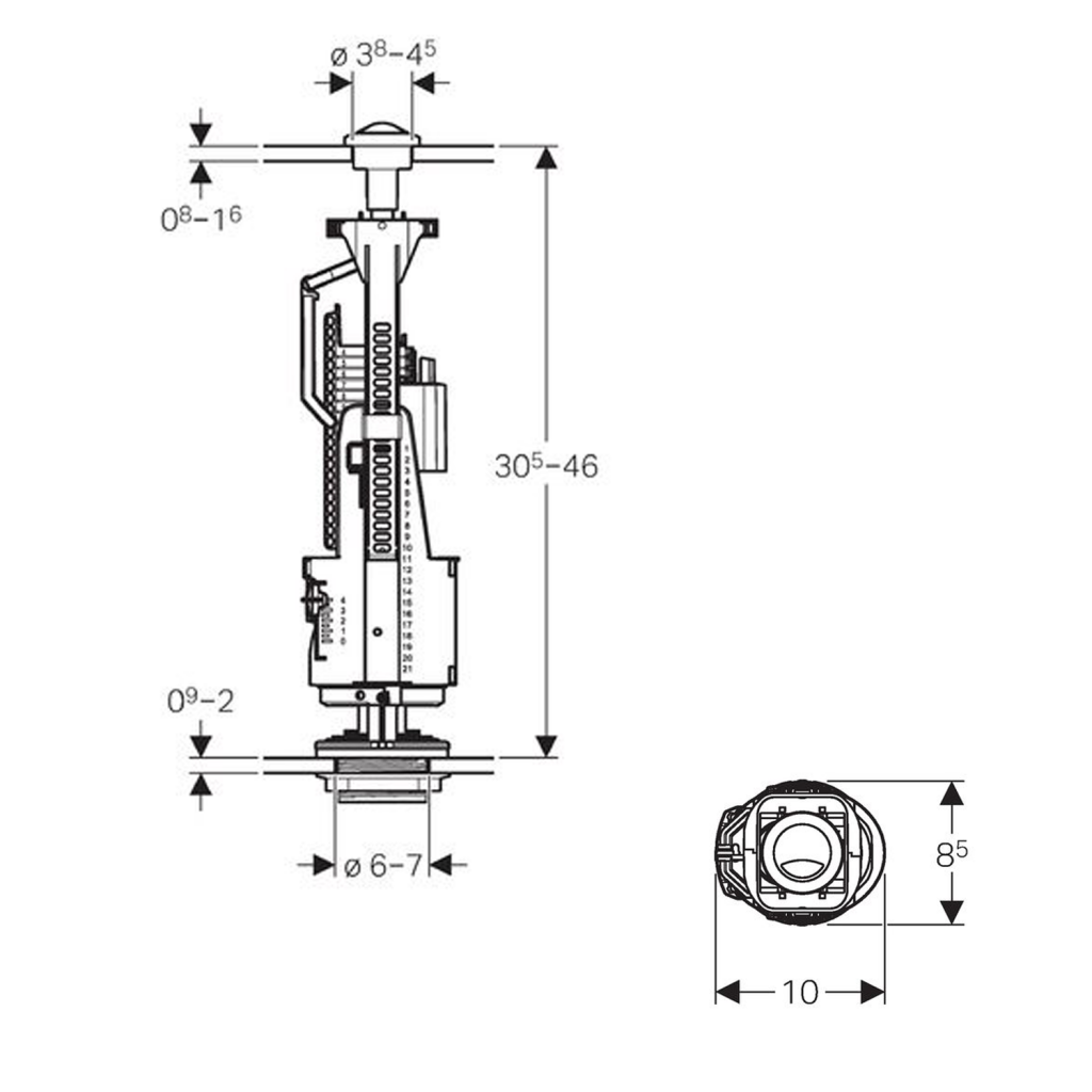 - Malé a velké splachovací množství (Nastavitelné podle množství vody ve splachovací nádržce)