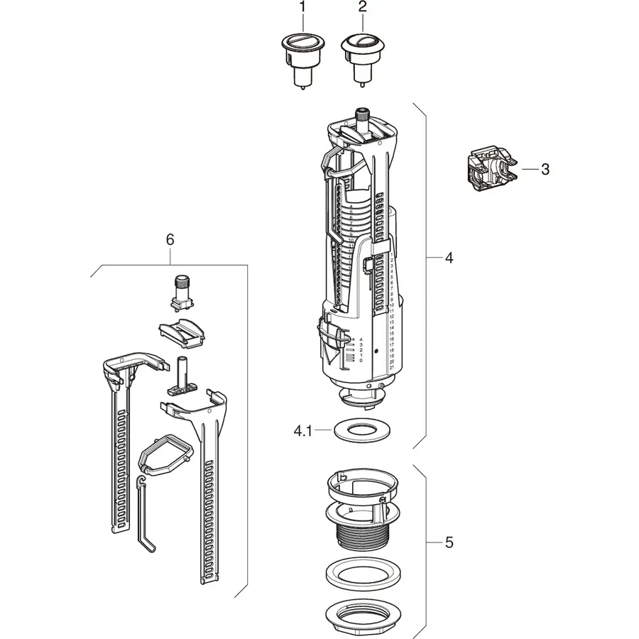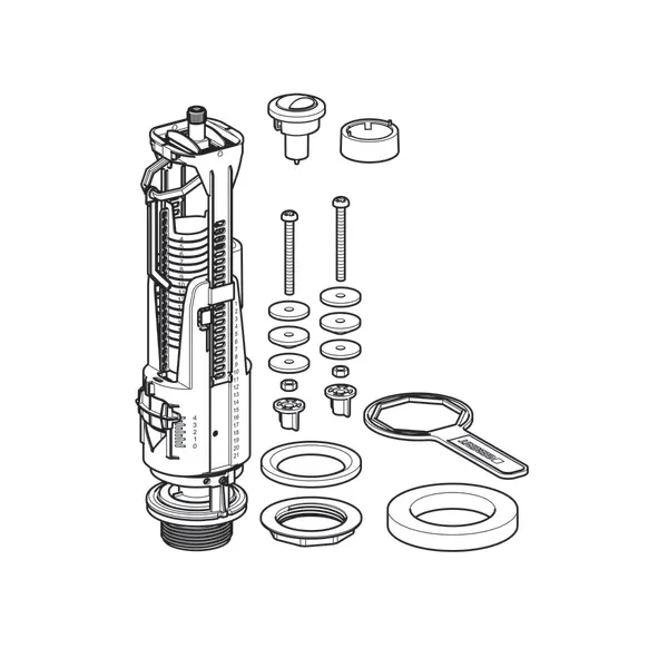 Geberit vypúšťací ventil kompletný, typ 240, pre keramické nádrže, malé a veľké splachovanie 136.901.21.2
