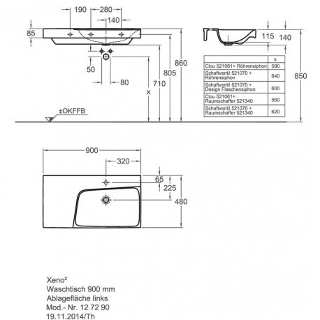 Geberit Xeno 2 Umývadlo s odkladacou plochou 90cm / 48cm s otvorom pre batériu bez prepadu odkladacia plocha vľavo KeraTect / Biela 500.535.01.1