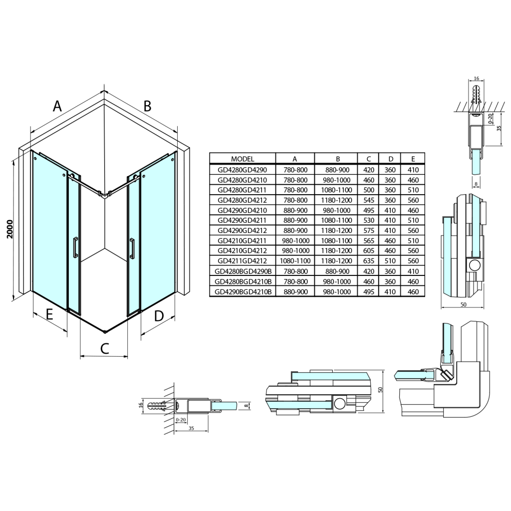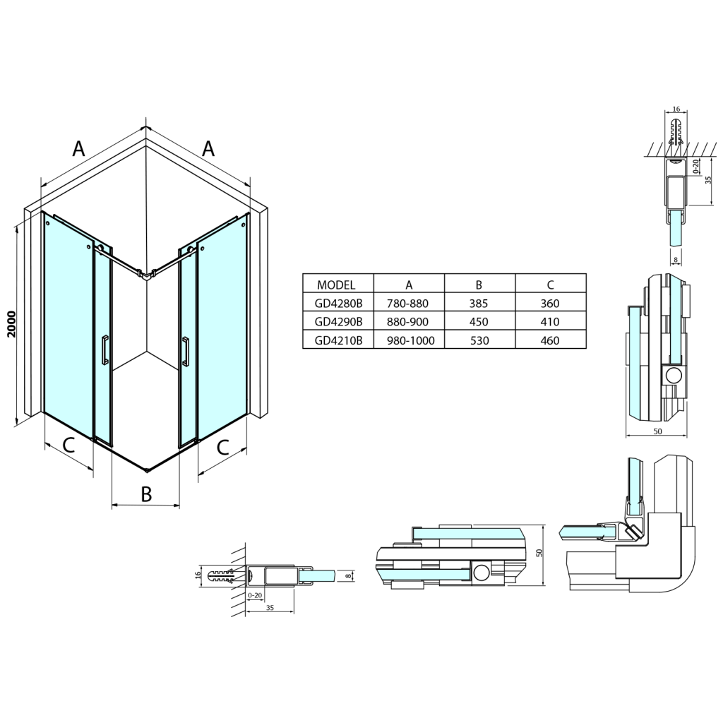 - Prístenné profily sú nastaviteľné až o 15 mm a riešia tak nerovnosti stien
