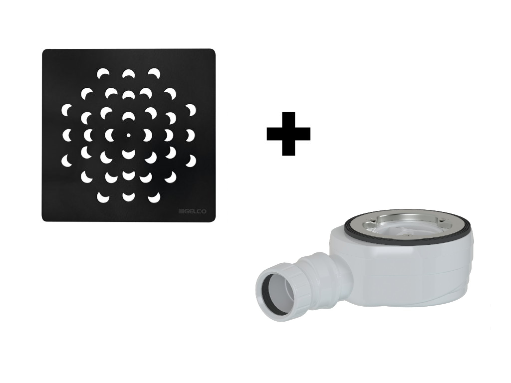 GELCO SET - Štvorcová krytka sifónu čierna KSM104B + sifón PB90EXN mínus (KSM104B-SN90)