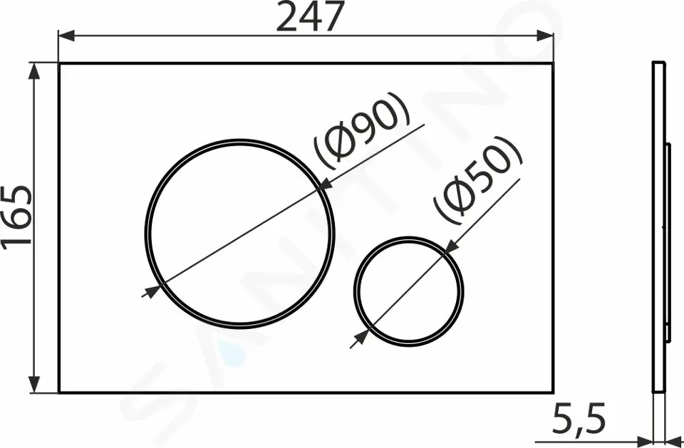 - Tlačidlo minimálne vystupuje nad obklad vďaka hrúbke iba 5,5 mm