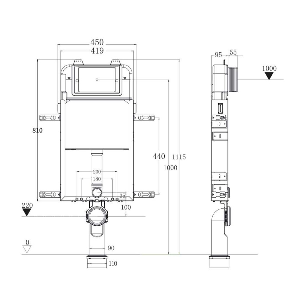 Predstenový inštalačný modul pre závesné WC, na zamurovanie