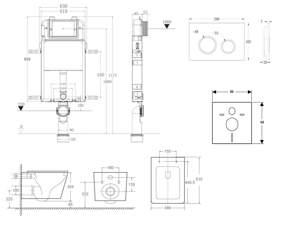 - predstenový inštalačný modul kielle Genesis New so splachovacou nádržkou pod omietku