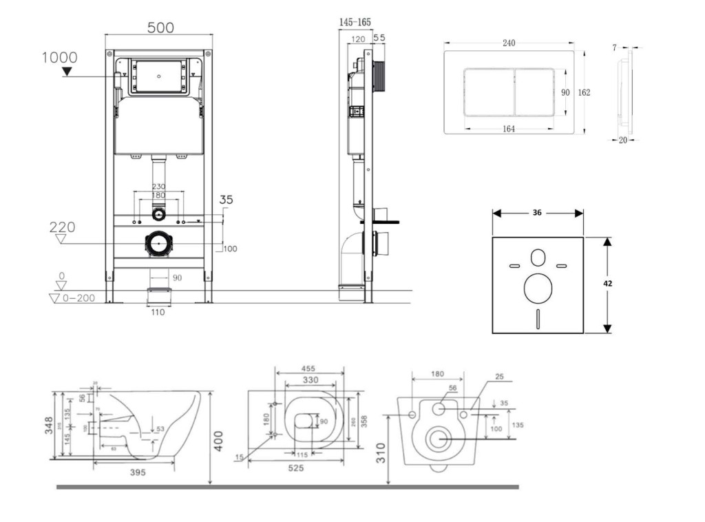 - Pre montáž závesného WC s pripojovacou roztečou 180 mm