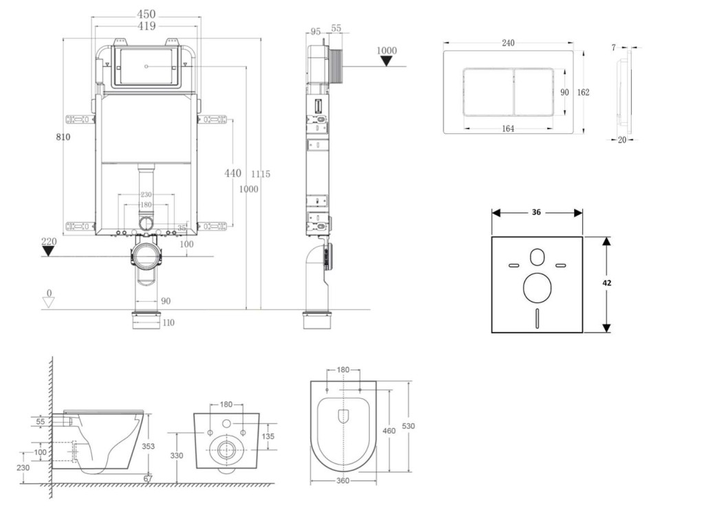 - Pre závesné WC