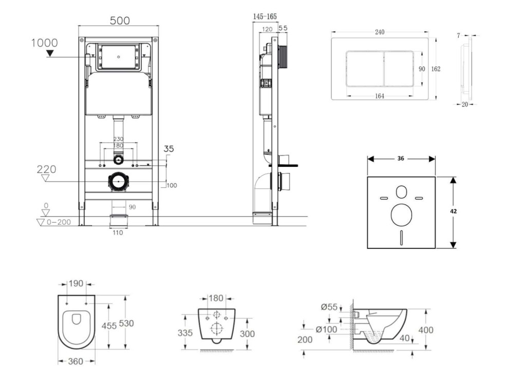 - Pre závesné WC