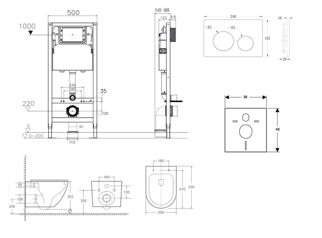 - Pre montáž závesného WC s pripojovacou roztečou 180 mm